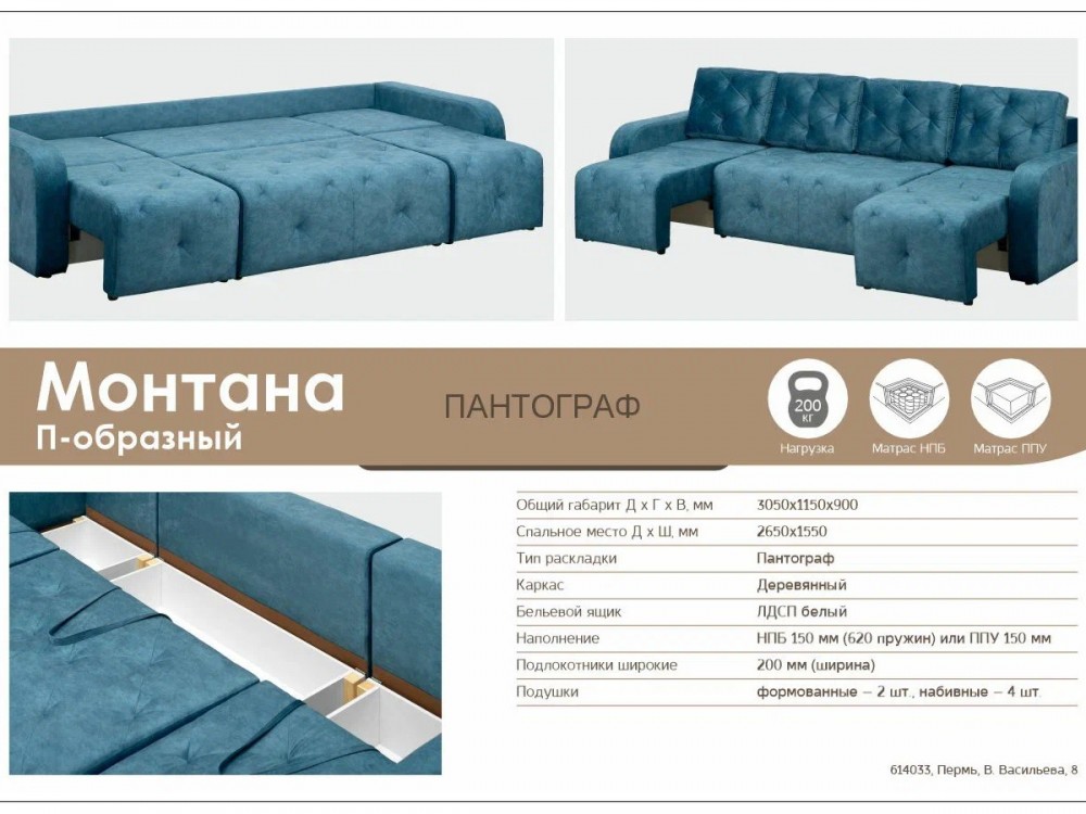 Диван Монтана П-образный в Верхнем Уфалее - verhnij-ufalej.mebel74.com | фото 2