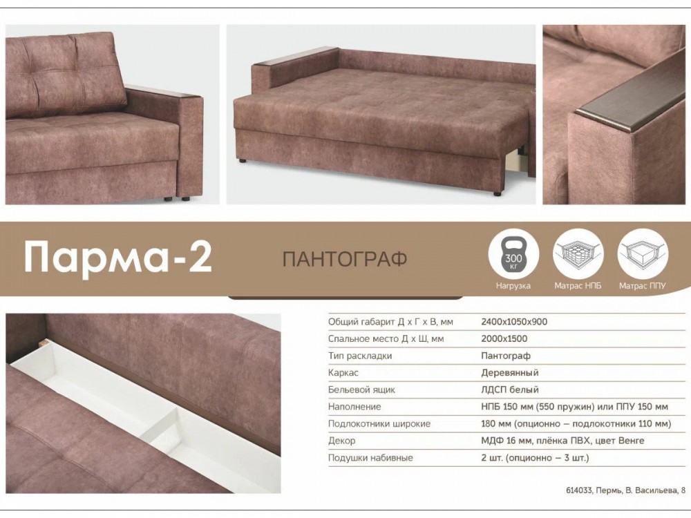 Диван Парма-2 в Верхнем Уфалее - verhnij-ufalej.mebel74.com | фото 2